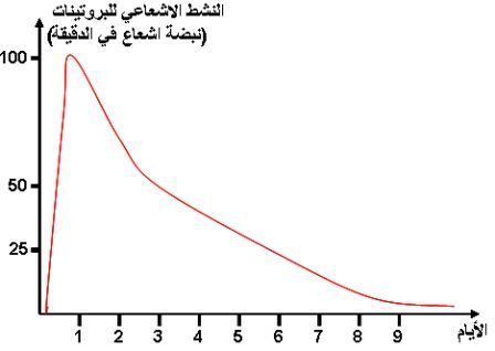 1 ـ تجديد وتركيب المادة الحية: تتجدد الجزيئات العضوية المكونة للمادة الحية عند الكائنات الحية باستمرار حيث تموت خلايا وتعوض بأخرى جديدة. برنام للتحميل يوضح مكونات الخلية 2 ـ الكشف عن تجديد المادة الحية: 2 ـ 1 ـ معطيات تجريبية: تعطى لفئران بالغة وجبات غنية بأحماض أمينية مشعة وتؤخذ قطع من كبدها بانتظام وتقاس بها نسبة الإشعاع، تمثل الوثيقة التالية النتائج المحصل عليها: