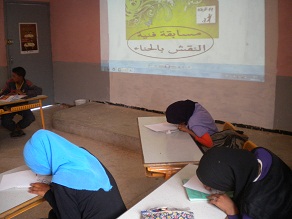 حرصا منا عاى تنويع الانشطة محتوى و هدفا نظم النادي الثقافي و الفني لـ م م المزيلات مسابقة فنية بين تلميذات المستوى السادس بالمركزية بعد انتقائهن باشراف مسابقة فنية في النقش باستعمال الحناء وتجدر الاشارة انه تم تخصيص جوائز تقديرية للفائزة الاولى