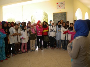 يتابعن دراستهن بنفس الاعدادية باستقبال و مصاحبة ضيوفهم من تلاميذ المستوى السادس لتعريفهم بكل مرافق المؤسسة من قاعات الدرس و المطالعة و الانشطة الموازية و المعلوميات والملاعب و غرف المبيت و غيرها ,مع تنظيم انشطة فنية وثقافية خاصة بهذه المناسبة