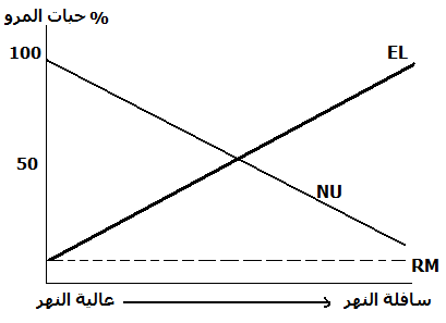 1ـ ماذا تستنتج من خلال تحليلك لهذه النتائج؟ 2ـ اعتمادا على ماسبق حدد على الوثيقة1 موقع اخذ العينيتن A و B التمرين 3 : لمعرفة تاثير النقل على الرواسب في المجاري المائية، قمنا بدراسة حبات المرو لعدة عينات رملية من عالية النهر الى سافلته، ويعبر المبيان التالي على النتائج المحصل عليها.