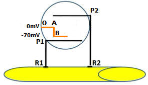2ـ استخلص تأثير التهييج على سطح الليف العصبي.