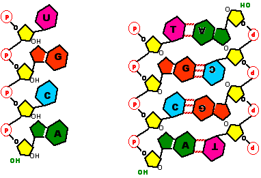 2 ـ مقارنة ARN و ADN كل من الجزيئتين عبارة عن عديد نيكليوتيدات، لكن هناك عده اختلافات نوردها في الجدول التالي: