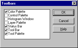 كذلك، وكما قلنا قبل قليل فعندما نضع المؤشر على أحد الأزرار في أشرطة الأدوات يظهر وصف مختصر على هذا الشريط (شريط المعلومات) عن عمل هذا الزر المحدد.بقي أن اقول لك أنك تستطيع التحكم بإظهار أو إخفاء أي من هذه الأشرطة من خلال إختيارك للأمر ToolBars من قائمة View فتظهر الشاشة التالية التي تحدد منها ما تريد إظهاره أو إخفائه.