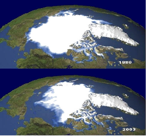تمثل الوثيقة التالية الكتلة الجليدية البحرية في القطب الشمالي بين سنتي 1980 و2003.