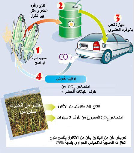 يكمن حل مشكلة التلوث البيئي المرتبط باستعمال الطاقة الأحفورية الملوثة، في البحث عن مصادر أخرى بديلة للطاقة اقل تلويثا للبيئة. 1 ـ الوقود البيولوجي: تعد الطاقة بشكلها السائل سهلة النقل والتخزين، مما يجعل الوقود الأخضر مصدرا واعدا لإنتاج الطاقة البديلة.