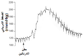 بعد حقن الأدرينالين أو النورادرينالين لكلب سليم، نتتبع تغيرات الضغط الشرياني، النتائج المحصل عليها ممثلة في المبيان التالي: