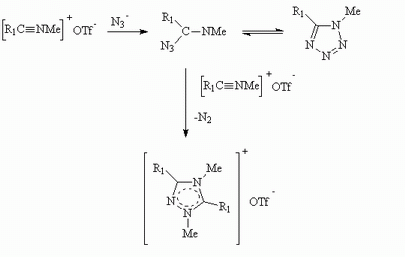 Research InterestsFor several years i have carried out collaborative research with a group based at the University of Manchester ,United Kingdom developing methods for the synthesis of 1,5-disubstituted tetrazoles , triazolinium salt and anovel iminophsphoranes { Ph3P=CR'CR"=NHMe}+otf- , according to the following published papers,Now im focusing in studying the influenc of the steric effect on formation of the tetrazoles and triazinium salts in the same reactions 1-The Chemistry of Nitrilium Salts. Part 3. The Importance of Triazinium Salts in Houben-Hoesch Reactions Catalyzed by Trifluoromethanesulphonic Acid Abstract In the presence of trifluoromethanesulphonic (triflic) acid, isobutyronitrile reacts with anisole, 1,3-dimethoxybenzene, resorcinol, 1,3,5-trimethoxybenzene, and phloroglucinol at room temperature to give acylation products.A study of the reactions of acetonitrile and isobutyronitrile with triflic acid has shown that these modified Houben-Hoesch reactions occur by initial cyclotrimerization of the nitriles to 1,3,5-triazinium triflate salts followed by a slow reaction of the salts with the aromatic substrate.Support for this comes from the isolation of 2-(4-methoxyphenyl)-2,4,6-tri-isopropyl-1,2-dihydro-1,3,5-triazine from the reaction between anisole, triflic acid, and isobutyronitrile.Similar 1,2-dihydro-s-triazines and their salts have been prepared by reaction of trimethyl-s-triazinium triflate with 1,3-(MeO)2C6H4, and tri-isopropyl-s-triazinium triflate with 1,3-(RO)2C6H4 (R = H or Me) and 1,3,5-(MeO)3C6H3; these salts are easily hydrolyzed to the corresponding aromatic ketones.The salt (1,3,5-Me3C3N3H2)+2(*)3SCF3 also reacts with o-phenylenediamine to give 2-methylbenzimidazolinium triflate in 83% yield.Nitrilium salts (RC(*)NMe)+<*<3SCF3 (R = Me, Ph, or PhCH2) undergo rapid reactions with 1,3-(MeO)C6H4 to form acylation products after hydrolysis, and N,N-dimethylaniline similarly affords 4-Me2NC6H4COMe on reaction with (MeC(*)NMe)+(*)3SCF3 at room temperature ================================================================= 2-Controlled Synthesis of 5-Substituted 1-Methyl-1H-Tetrazoles and 3,5-Disubstituted 1,4-dimethyltriazolium Salts from N-Methylnitrilium Trifluoromethanesulfonate Salts. Abstract C-Alkyl and -benzyl N-methylnitrilium trifluoromethanesulfonate salts, (R1C=NMe)+ OTf- (R1=Me, Prn, Pri, But, PhCH2; OTf=O3SCF3), react rapidly under mild conditions with either sodium azide or tetramethylguanidinium azide in nitromethane to give the corresponding 5-substituted 1-methyl-1H-tetrazoles as the sole product in high yields.These reactions are independent of the mode of addition.C-aryl-N-methylnitrilium trifluoromethanesulfonate salts (R1=C6H6, 2-MeC6H4, 4-MeC6H4, 2,4-Me2C6H3) give mixtures of the corresponding tetrazoles and the triazolium salts with sodium azide.With tetramethylguanidinium azide the products depend upon the mode of addition.Addition of the nitrilium salt to the azide gives only the tetrazole, while inverse addition gives the triazolium salt in high yield. ================================================================= 3-Reactions of Stabilised Phosphorus Ylide with Nitrilium Trifluoromethanesulphonate Salts Abstract N-Methylnitrilium trifluoromethansulphonates react readily with methoxycarbonylmethylene(triphenyl)phosphorane to give methoxycarbonylmethyl(triphenyl)phosphonium trifluoromethanesulphonate and the new phosphonium trifluoromethanesulphonates (Ph3PC(CO2Me)=CRNHMe)+OTf- (R=Pri, Ph, 2-MeC6H4, 4-MeC6H4, Me) in moderate yields. 31P and 13C NMR spectroscopic data indicate significant contribution from the resonance form (Ph3PC(CO2Me)-CR=NHMe)+OTf- in the compounds Last Updated sebtemper/ 2003 |