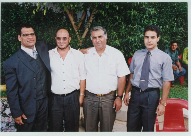 من اليمين : عبد عيساوي ، الشاعر صالح زيادنة ، الشيخ محمود أبو غظية ، الشاعر سهيل عيساوي .